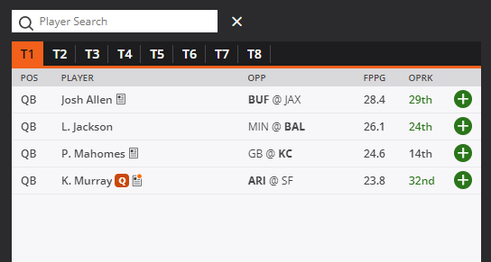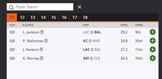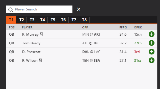 Week 9 DraftKings Tiers Core Plays