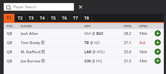 DraftKings Tiers Core Plays – Week 6